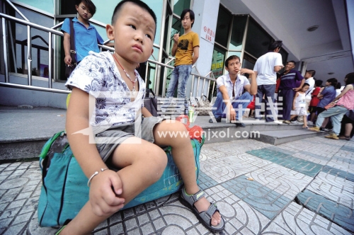 昨天上午,在嘉兴火车站售票大厅外,6岁的李复森坐在行李包上,一脸的不耐烦,他的爸爸在排队买票,已经好长时间了还没回来(后来问他爸爸李泽宇了,一共排了一个小时左右的队,才买到回老家怀化的车票)。据了解,随着返乡潮的到来,嘉兴火车站也迎来了客流高峰,日均实际发送客流量在9500人次左右。